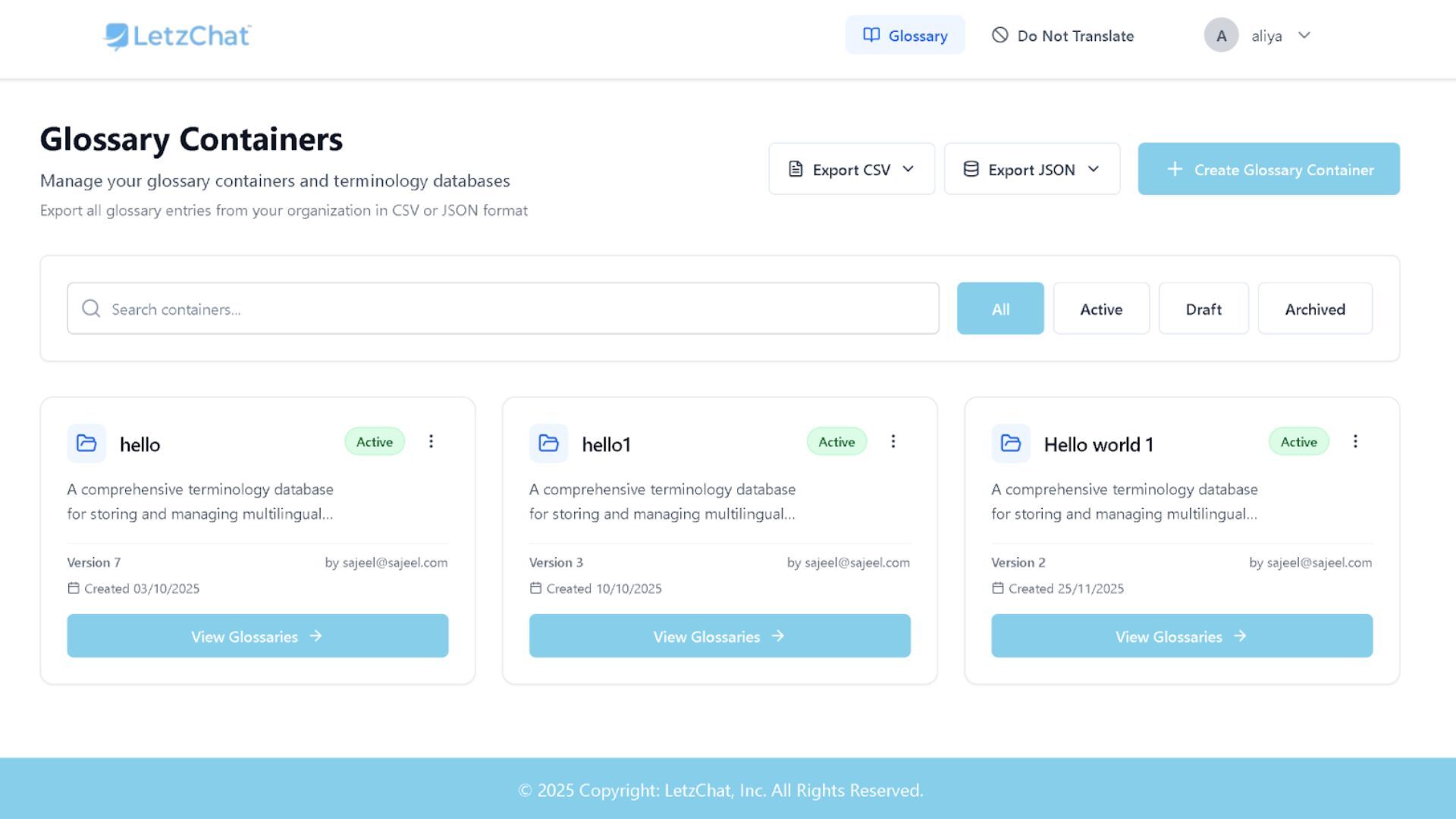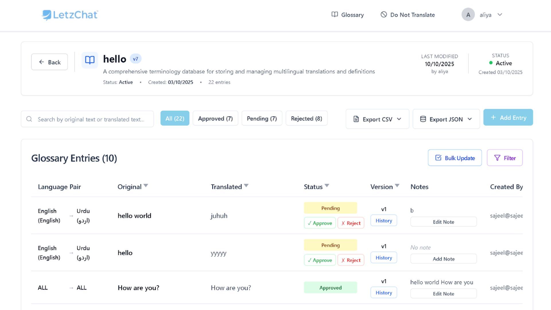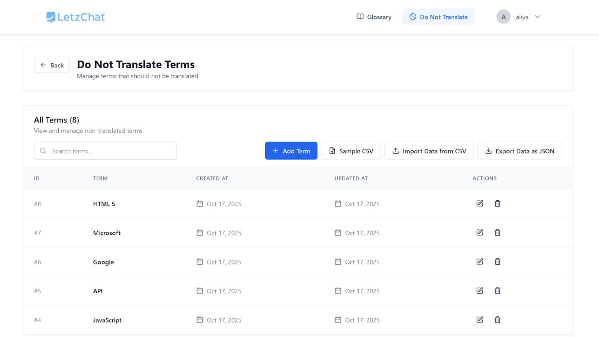 - Centralized glossary management across multiple languages